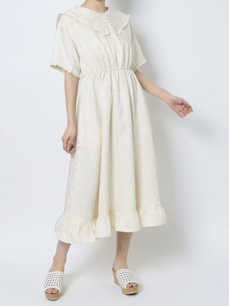 flowerジャガードフリルカラーワンピース