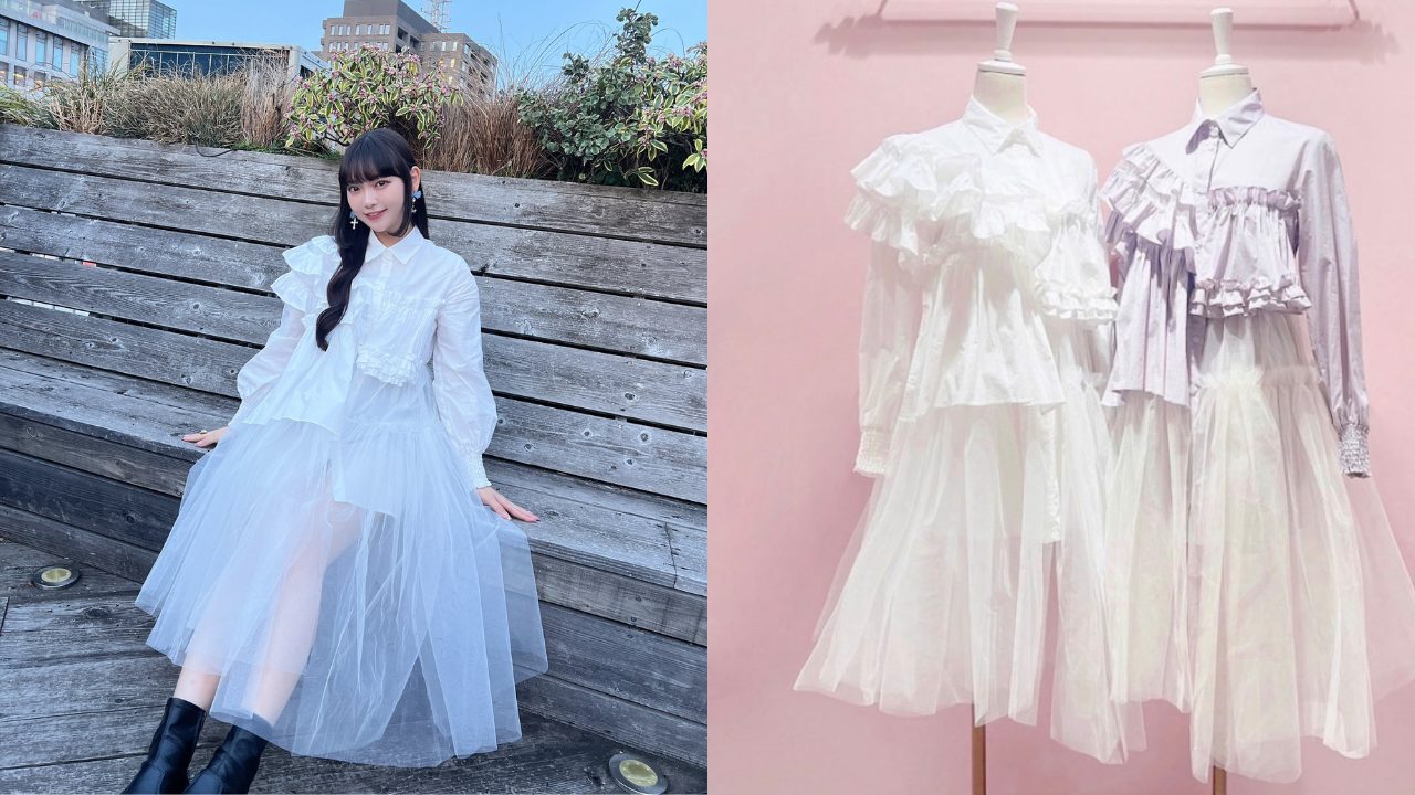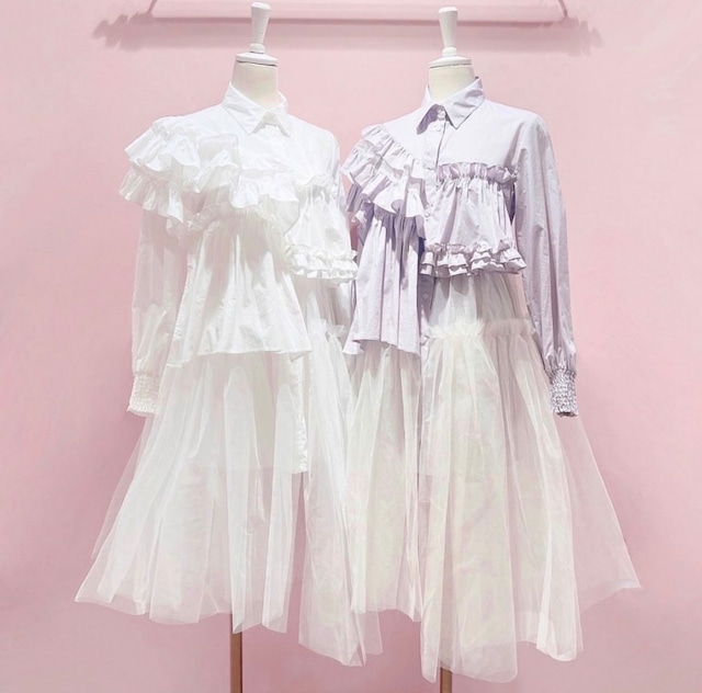 アシンメトリーチュールシャツドレス