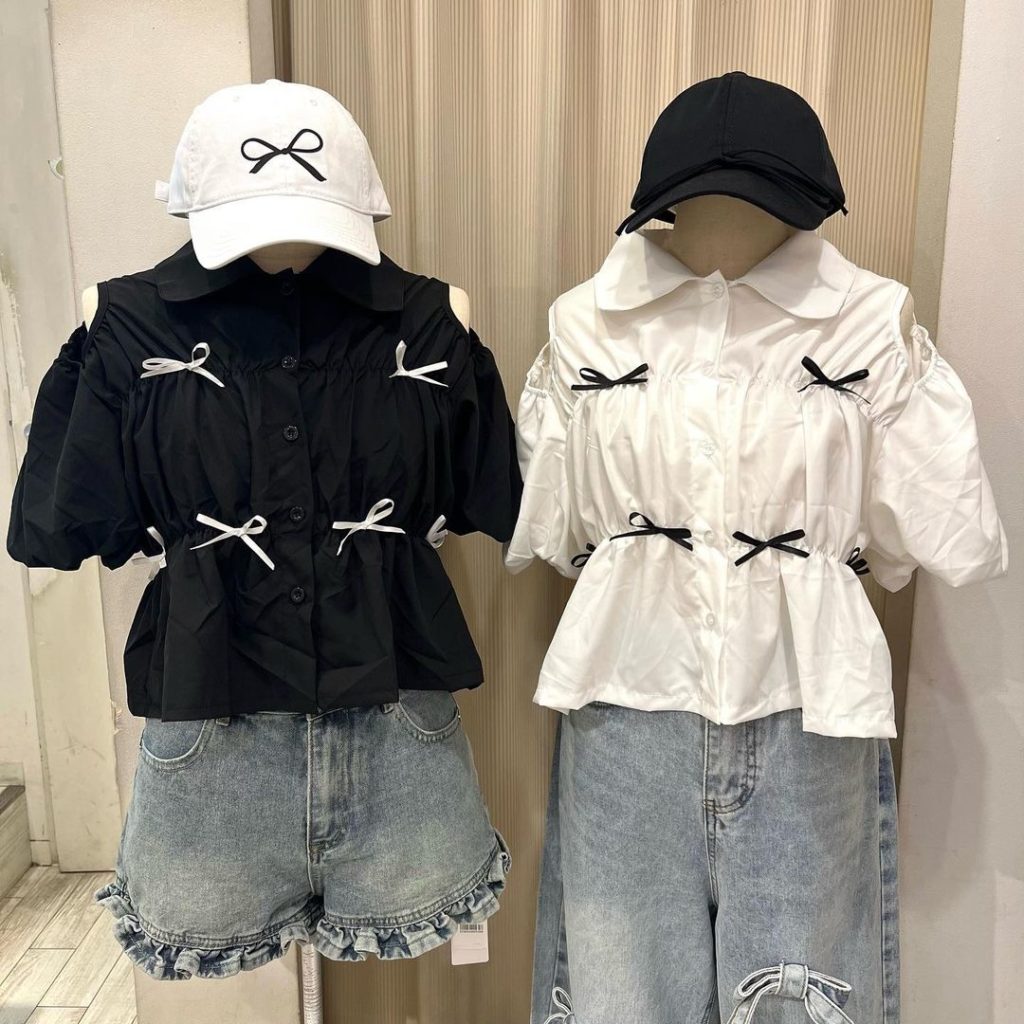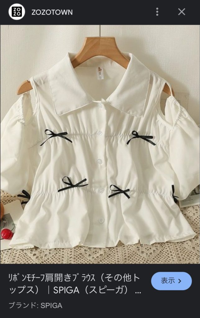 東山恵里沙 モテチェン!MV X LINE コピー 2024.07.16 #モテチェン!💘MVが公開されました!https://t.co/nkQBAVcE9iとってもかわいくてキャッチーな振り付けと楽曲です🐱🐾2つの衣装!どっちがすき?🫢💭君のために可愛くなりたい!😖ぜひ一緒に踊ってね💘#高嶺のなでしこ https://t.co/d2srexLjD2 pic.twitter.com/fiRZ2NtJVu— 東山 恵里沙 (@erisahigasiyama) July 14, 2024 ※ブランド不明(下記にわかっていることを記します) pralinesで リボン付きSH として販売 この投稿をInstagramで見る pralines(@pralines__official)がシェアした投稿 ページが消えており確認できませんでしたが、SPIGAのリボンモチーフ肩開きブラウスとして販売されていた模様です。 Screenshot パンツ→ こちら 靴→ こちら
