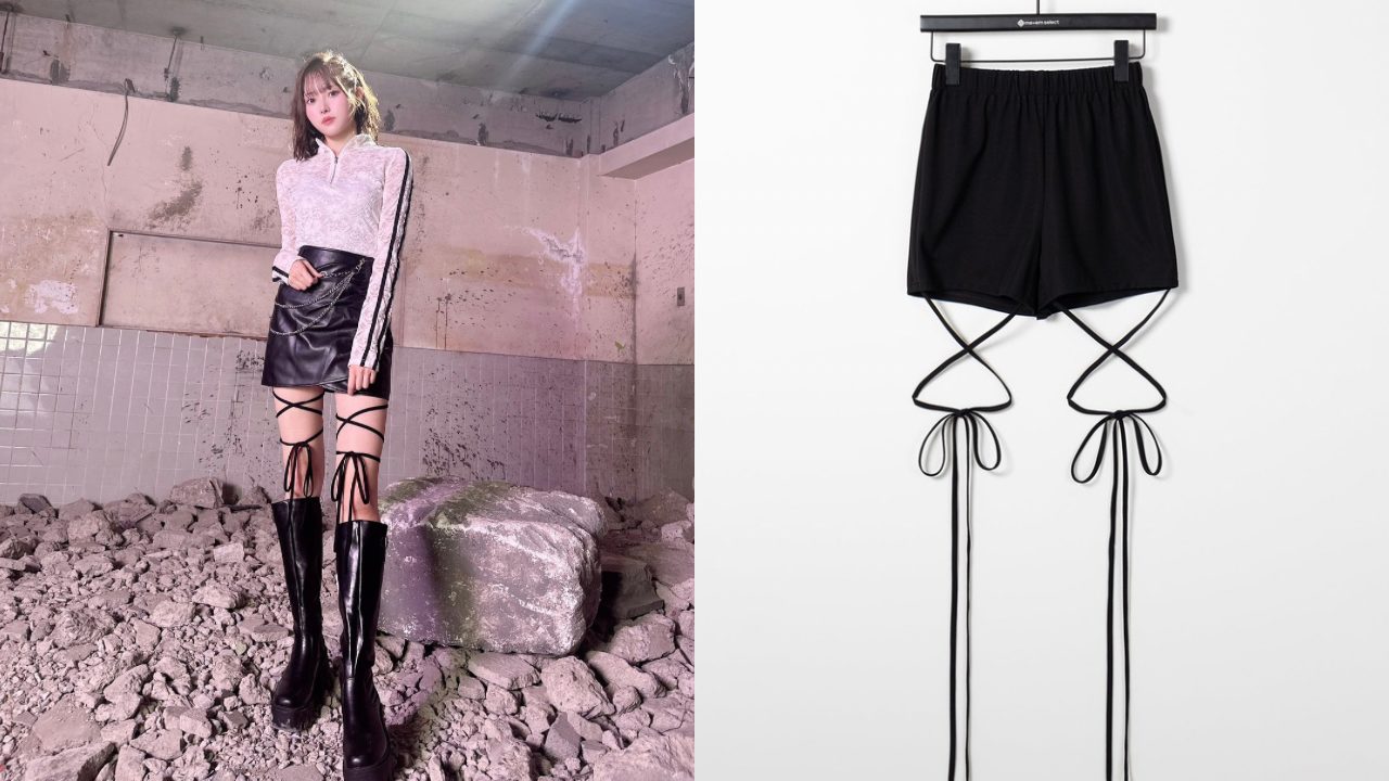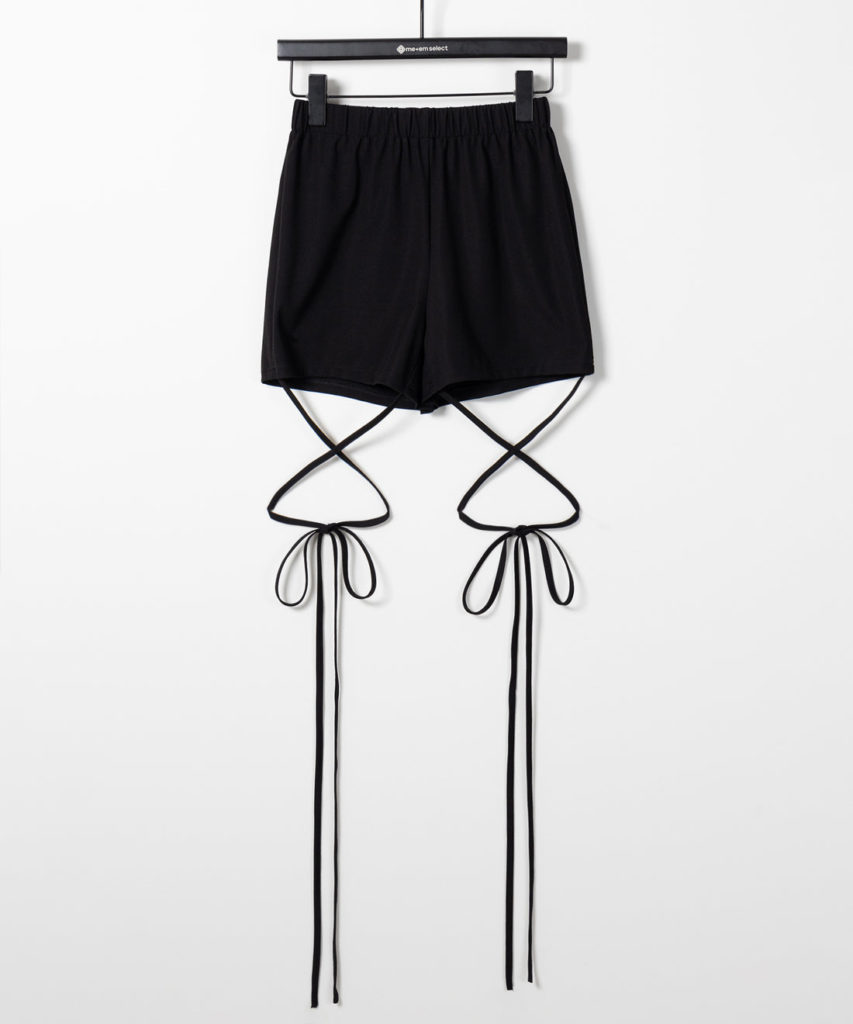 【 セルフカット調節可能 】クロスストラップリボンバイカーレギンスパンツ / cross strap ribbon biker leggings pants